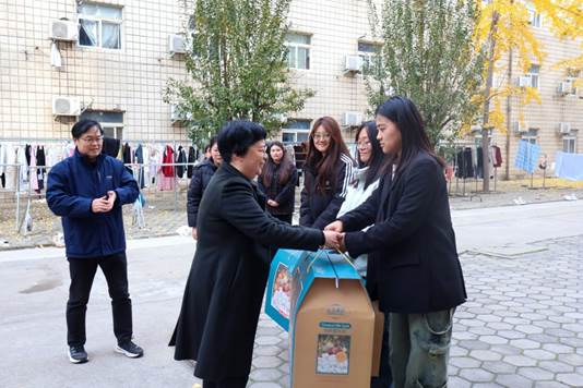 吕爱华代表公司为受资助员工送上棉被等慰问品,并表达了对受助同学的慰问和期望,寄言他们努力向前,争做新时代的弄潮儿。她的言语尽显对同学们的关切之情,如同冬日暖阳一样温暖到了每一个同学的心坎里,激发了同学们以更加饱满的热情投入到学习和生活中的信心。